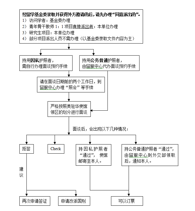 注:①凡申请公派赴美学习、进修、合作研究(含:联合培养)者,都必须向美校方申请DS-2019表、邀请函。