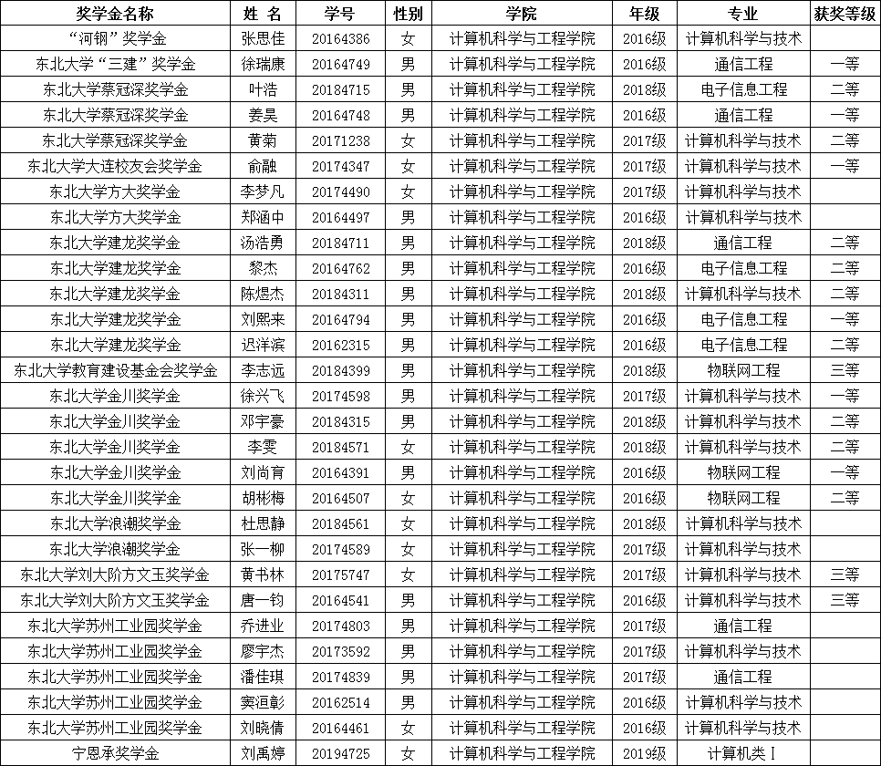 计算机学院2018—2019学年本科生各项命名奖学金推荐名单公示