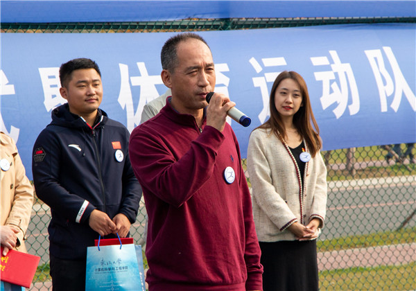 10月22日下午1时,我院2019年“竞计杯”体育嘉年华开幕式暨体育运动队成立仪式在浑南校区室外篮球场举行,校体育部教师王景利、曹盛民、回军、韩冰、毛羽鹏、王晓梅、胡丹丹、学院党委副书记兼副院长聂国东、学院团委书记李东海、学生工作办公室副主任董洋辰、学生工作办公室老师代表、运动员代表和各体育运动队代表参与此次活动。