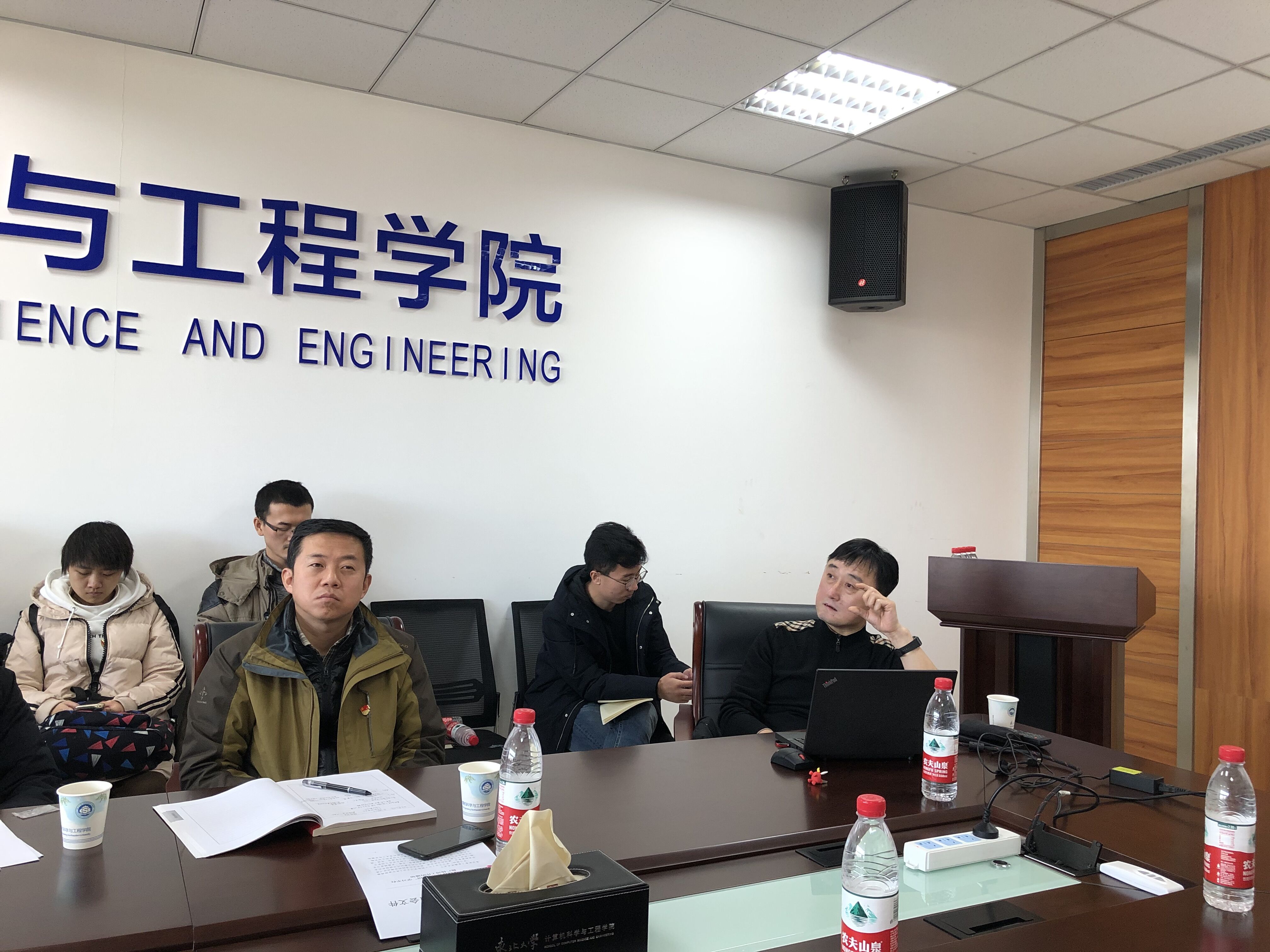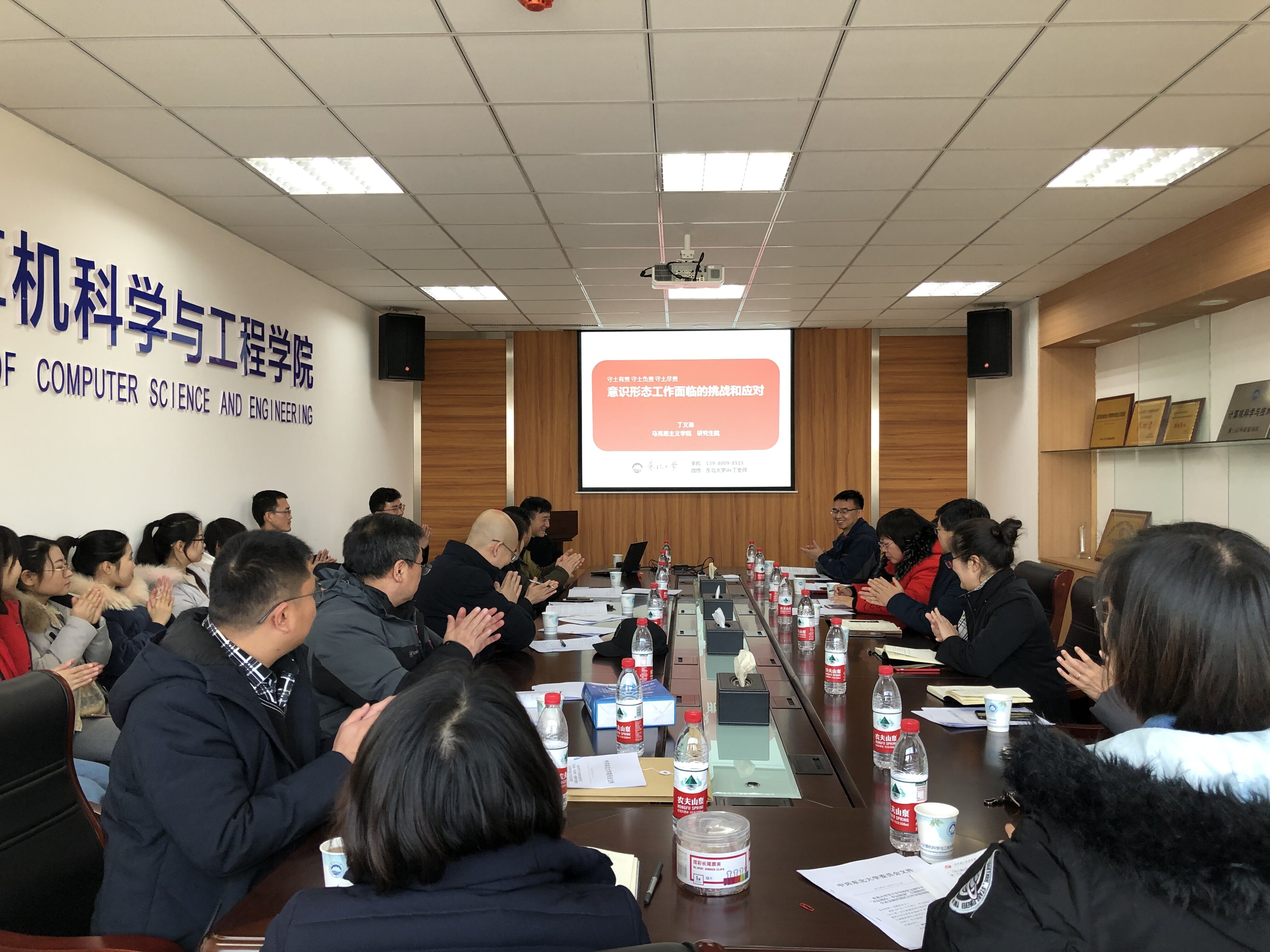 近日,我院党委理论学习中心组(扩大)学习在信息B320会议室召开,校宣讲团成员、研究生院副院长兼党委研究生工作部部长丁义浩应邀作“当前意识形态安全面临的挑战和应对”专题报告。学院领导班子全体成员、教工党支部书记、学生党支部书记代表参加了会议。会议由学院党委副书记兼副院长聂国东主持。