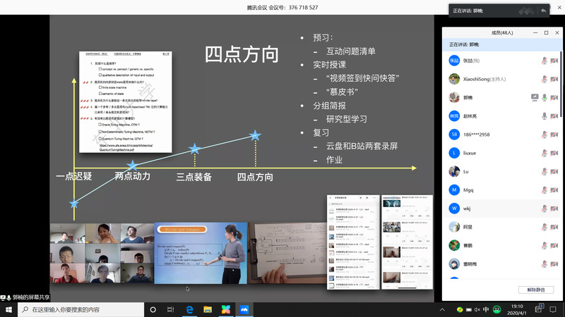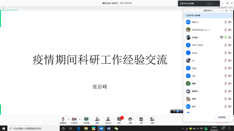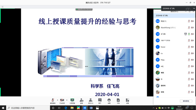 4月1日晚,我院分工会召开了“云上教学与科研”线上经验交流会暨青年教师沙龙活动。学院党委书记王克君、常务副院长杨金柱、副院长马国强、副书记兼副院长聂国东、副院长覃文军、工会主席信俊昌和学院青年教师共五十余人参加了本次活动,活动由工会委员宋晓诗老师主持。