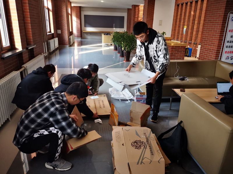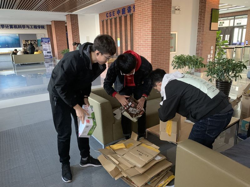 双十一前后,学生快递增多,尚有回收价值的快递纸盒堆满垃圾箱,一方面增加了清洁人员的工作量,另一方面也造成了资源的浪费。本次活动于11月10日、11日、14日、15日举行,为期4天,分别在一舍和五舍A、B大厅设置回收点,一区一站,共设置四个活动站点。活动开始后,同学们积极响应,纷纷将自己收集的快递盒纸箱捐到活动地点。志愿者们集中回收同学们捐赠的快递纸盒,整理后用剪刀将纸盒剪开、压平、捆绑,并用编织袋将捆好的纸盒打包。活动结束后,志愿者们将收集到的纸盒全部打包并人工运往学校浴池旁的废品收购站,现场称重,当面结清钱款,并把所得钱款悉数由学院定点捐赠至云南昌宁县的小学。