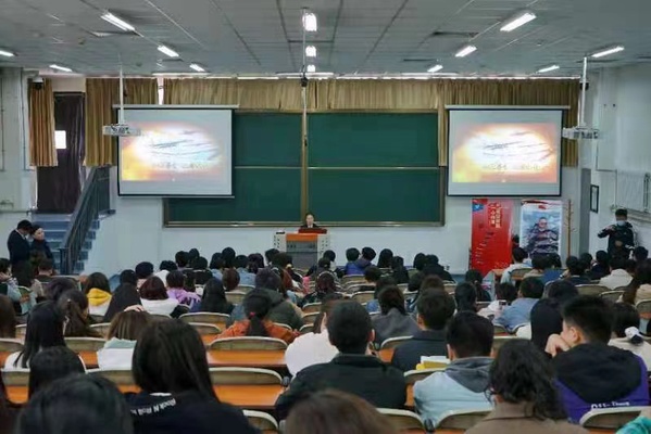 首先,出席本次宣讲会的老师和同学们一起观看了《沈飞辉煌之路》的宣传片,通过宣传片,大家对航空工业沈飞有了大致的了解,随后由宣讲员刘佳讲述了沈飞创业之路,讲述中让同学们初步了解了罗阳同志一直以来的“航空报国”志向。接着,宣讲员播放了《习近平讲述的故事》短片,更全面地介绍了罗阳同志为我国航空事业发展作出的突出贡献。短片之后,薛海梅、赵丹袆两位宣讲员分别讲述了“罗阳同志的两件事”和“用生命践行航空报国的罗阳”。2012年11月25日12时48分执行任务时,罗阳突发急性心肌梗死、心源性猝死,经抢救无效,在工作岗位上因公殉职,终年51岁。2012年,罗阳同志获得感动中国年度人物。丰富的图片和纪录信息让同学们更加深刻地了解到罗阳同志是一位“不忘初心、牢记使命”的优秀共产党员代表,是新时代强军梦,中国梦的忠实践行者!最后,宣讲团对东大给予的支持表示感谢,并指出沈飞与东大有着历史上的渊源,欢迎年轻一代学子加入沈飞,努力实现时代赋予的使命,共同祝愿祖国航空事业的发展越来越辉煌。