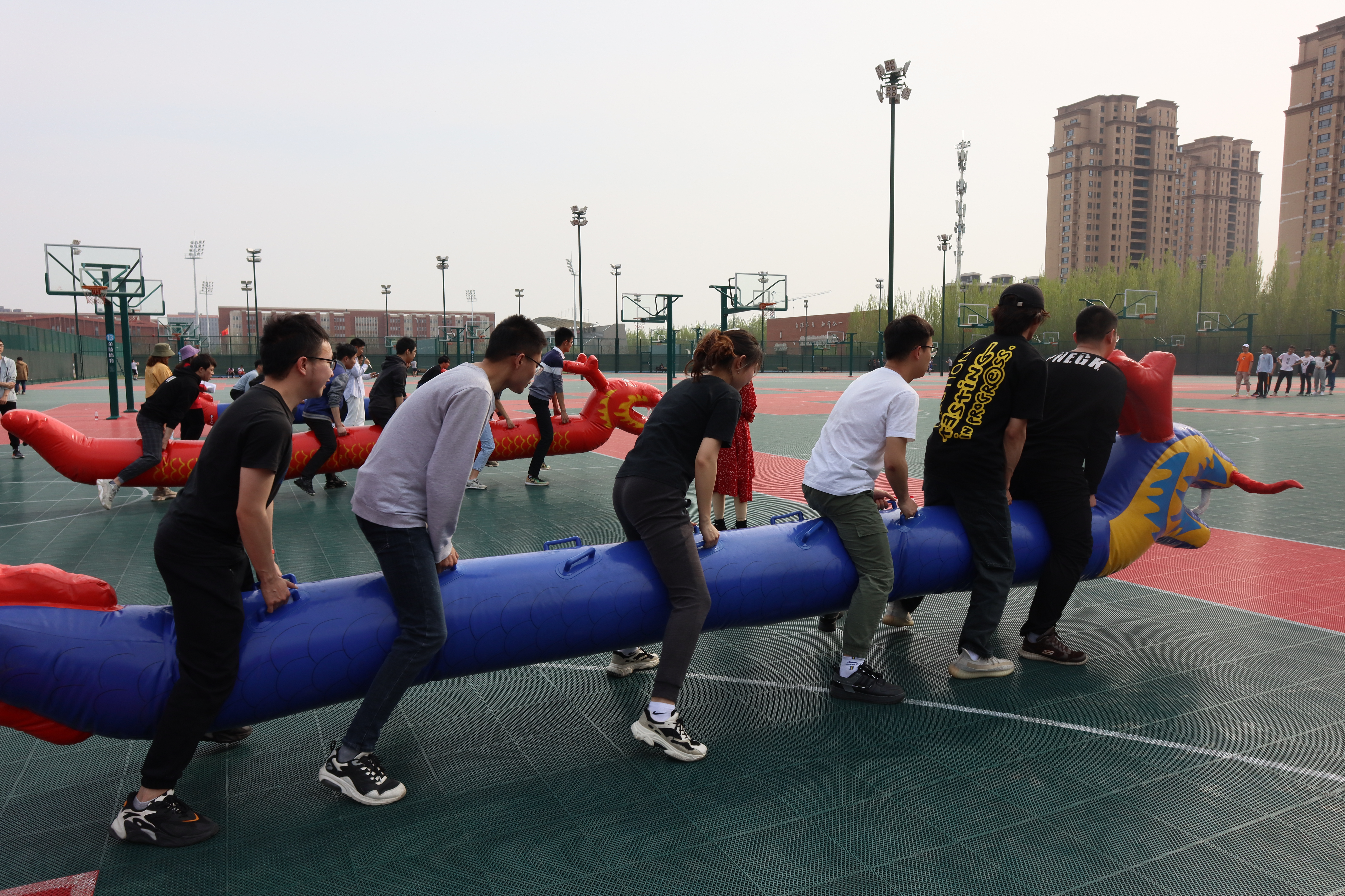随后毕业生嘉年华趣味运动会正式开始,各个队伍展开了激烈的角逐。本次趣味运动会共有三个项目,分别是“一流精准,‘计’艺精湛(套环锁物)”,“一流速度,‘计’流勇进(袋鼠跳接力)”以及“一流配合,‘计’昂青云(陆地龙舟)”。经过激烈角逐,最终计算机7-8班联队获得一等奖,计算机5-6班联队、计算机1-2班联队及通信1-3班联队获得二等奖,电子1-2班联队、物联网1-2班联队及计算机3-4班联队获得三等奖。