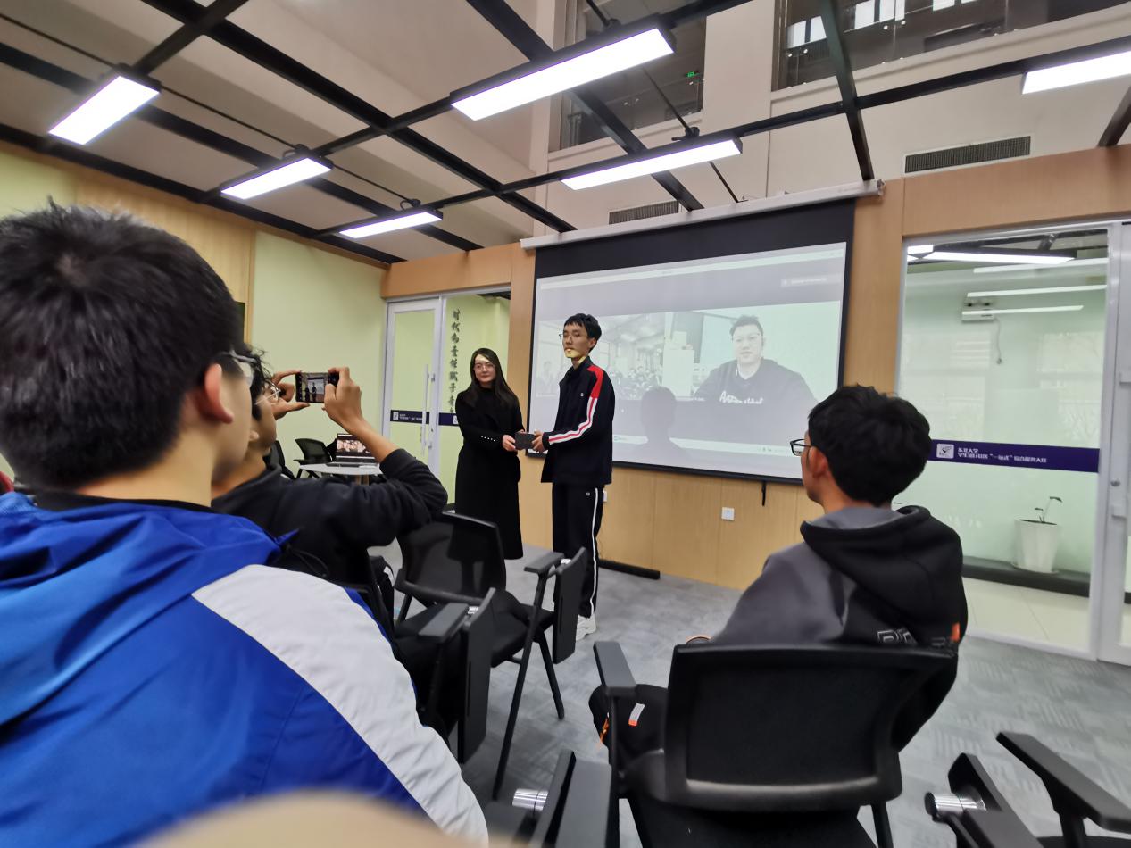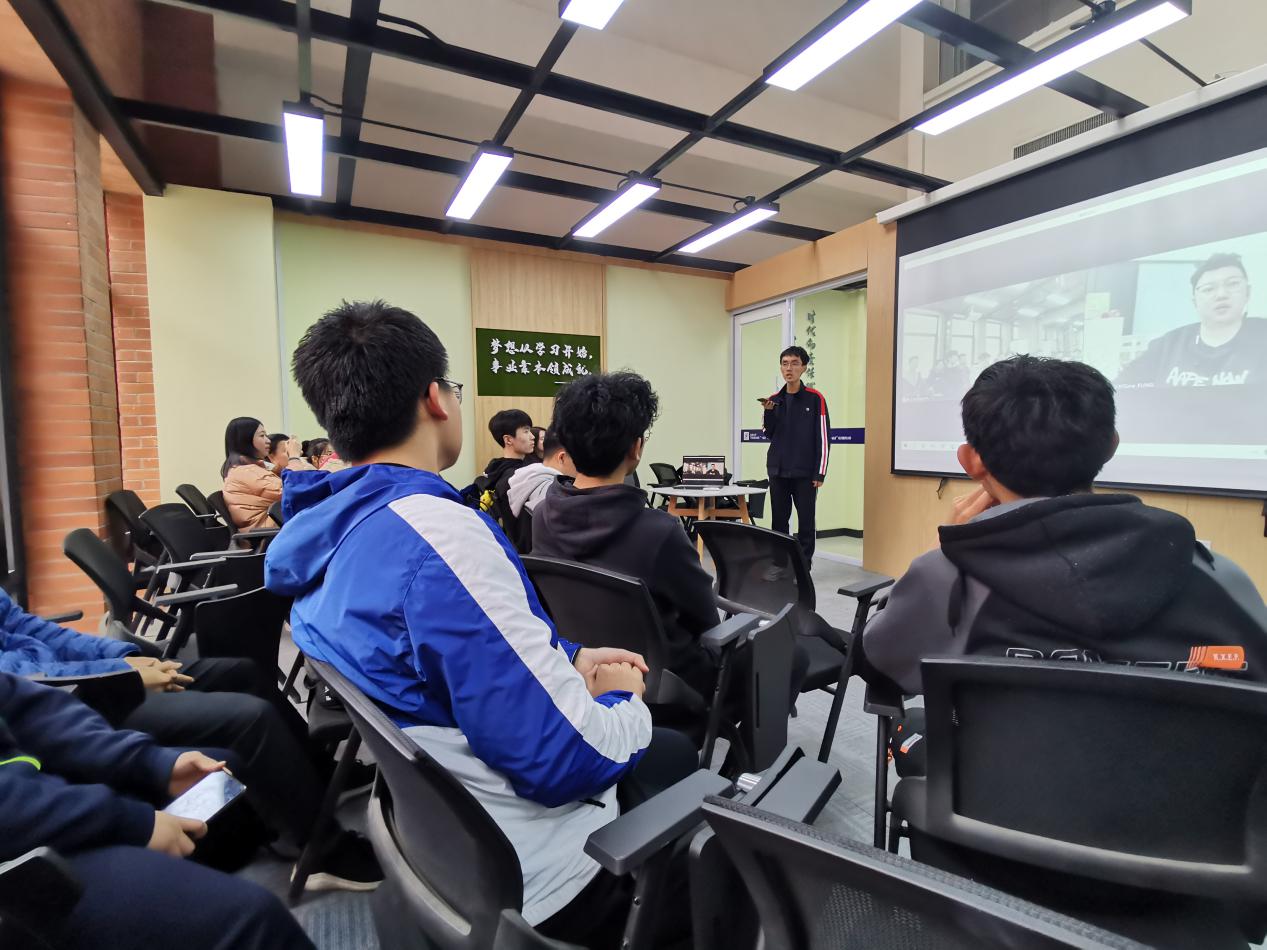 接着,企业班导师冯正轩通过视频会议的形式,向同学们公布了企业班导师专项奖励方案与奖励办法,并且给同学们分享了作为新时代的青年大学生应当如何提高综合素质,同时结合自身经历,鼓励同学们要做一个理论与实践两手抓的新青年。
