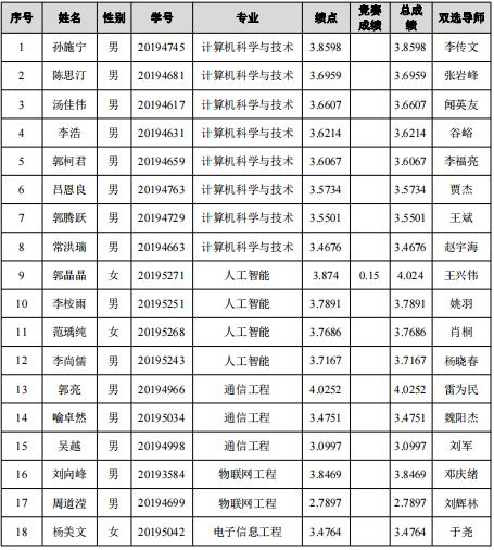 根据《计算机科学与工程学院2019级“本硕博”贯通班建设实施方案》要求,经过试培养阶段培养、导师双选,确定导师双选结果,现进行公示。
