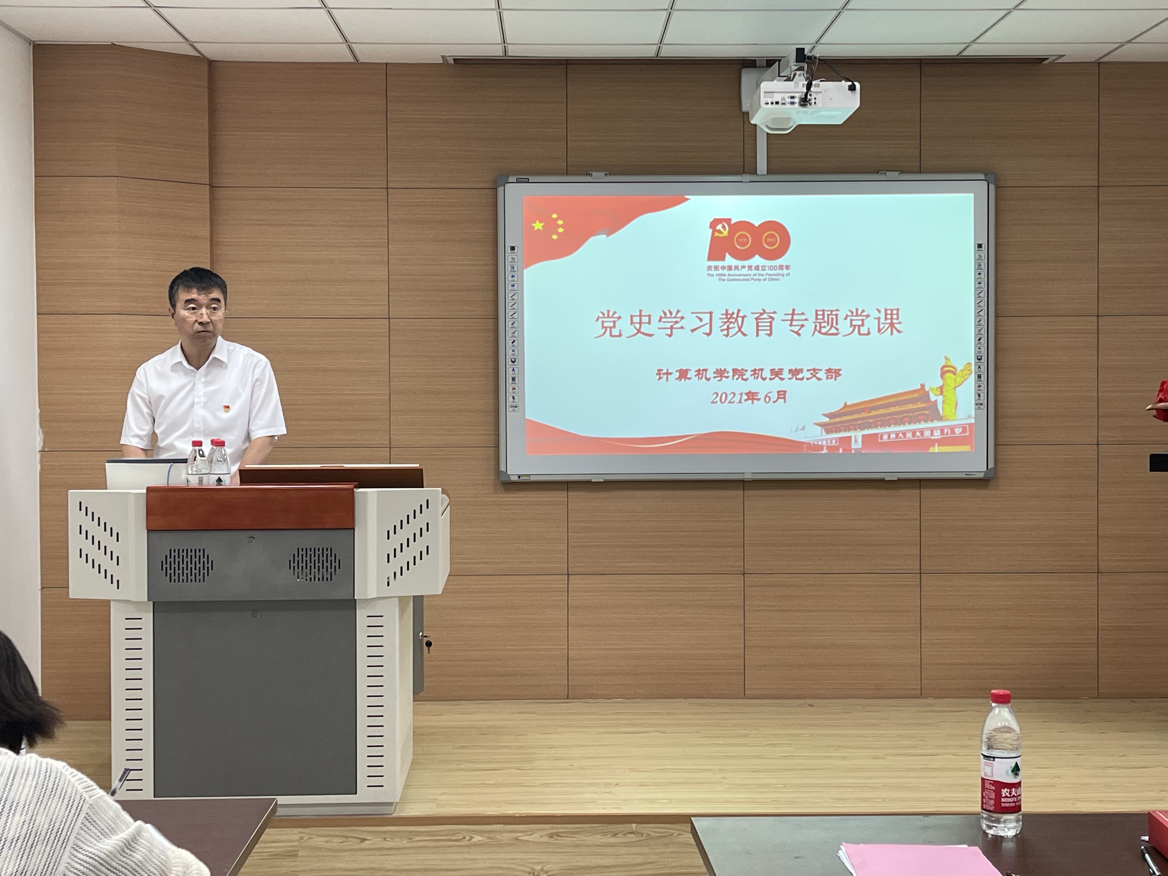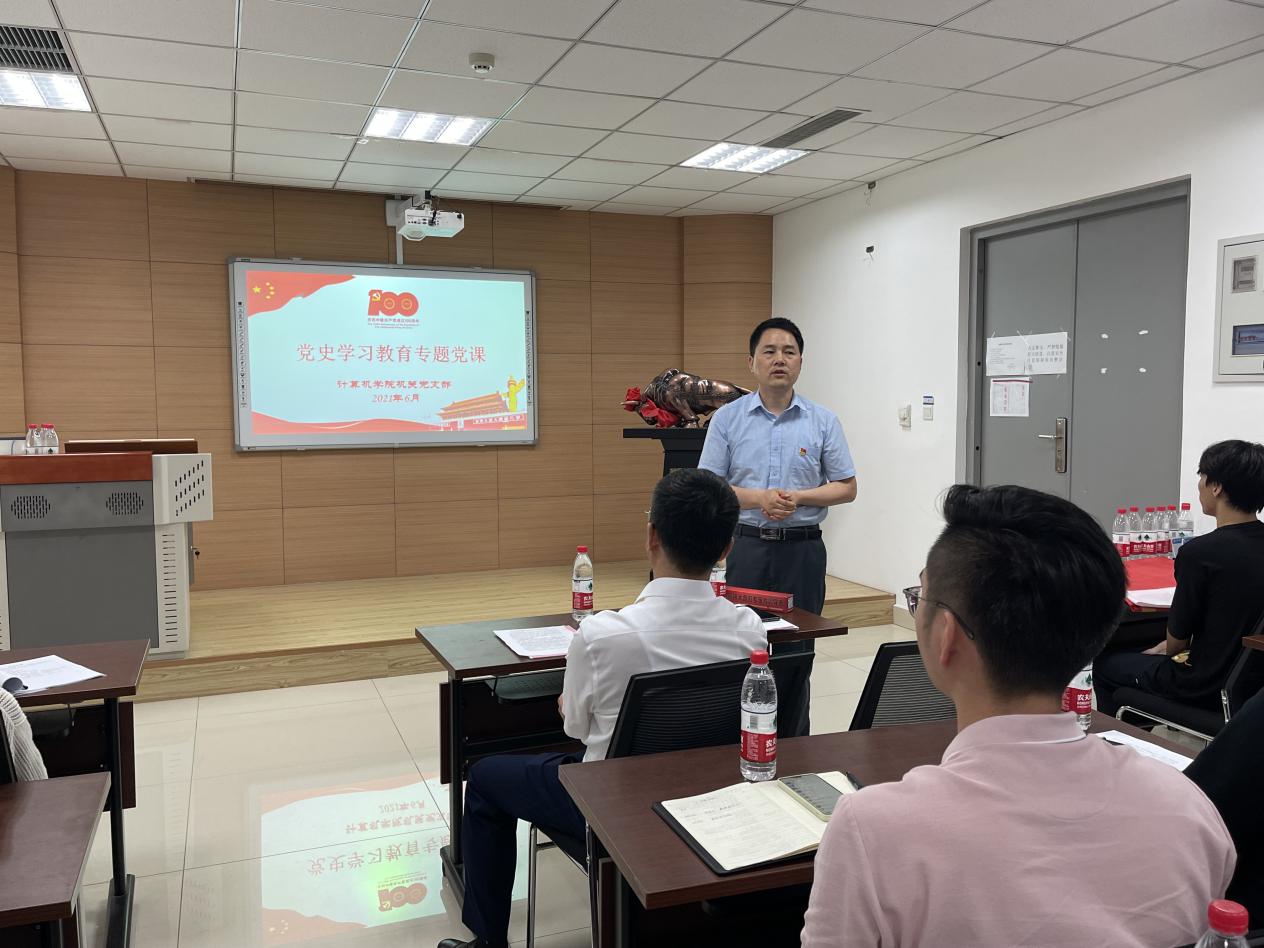 6月30日14:00,机关党支部党史学习教育专题党课暨集中宣誓活动在信息B328会议室召开。活动由学院副院长马国强主持。