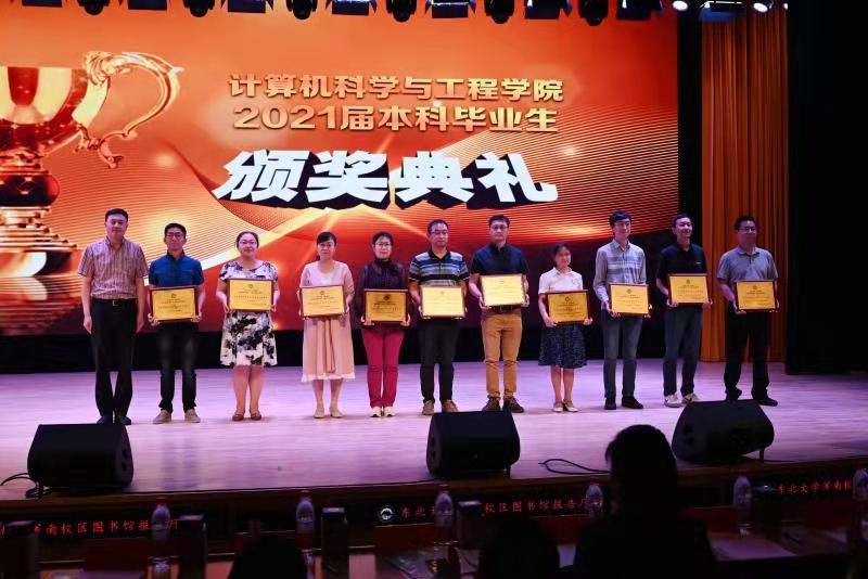 东北大学正处级组织员、党委组织部副部长姜玉原,党委宣传部常务副部长闫研、团委书记孙涛、学生工作处处长马天威、学生指导服务中心副主任程宏、创新创业学院副院长王刚,计算机学院党委书记邸馗、学院常务副院长杨金柱、学院副院长付冲、马国强、覃文军、学院党委副书记兼副院长聂国东、党委副书记兼纪委书记毕远国、院长助理、院工会主席信俊昌、教师代表、学院机关教师、学生工作干部、来自省内外的15位家长代表和2021届本科毕业生到场 参加了本次活动。颁奖典礼由学院学生工作办公室主任梁媛主持。