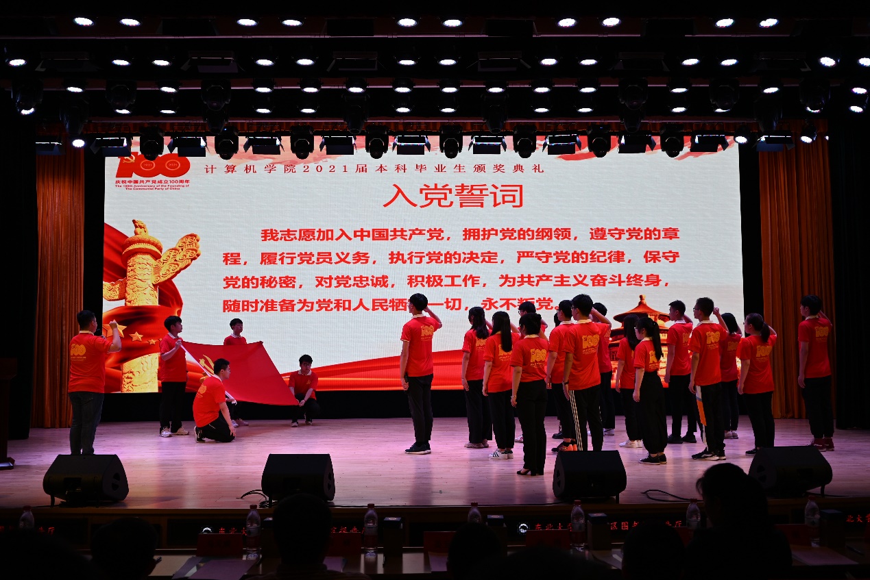 恰逢中国共产党成立100周年,18名荣获“出彩毕业生”“最美毕业生”的2021届毕业生党员代表为敬爱的党组织献上了深情的祝福,并再一次重温入党誓词,在党旗下庄严宣誓。