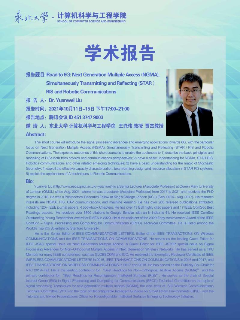 Dr. Yuanwei Liu学术报告