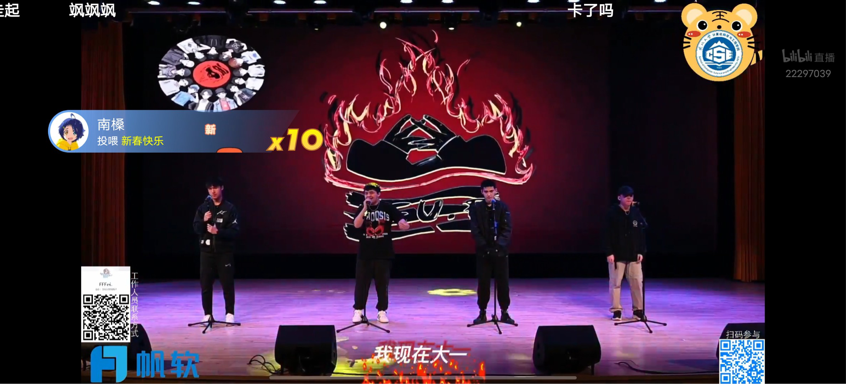 在晚会正式开始之前,播放了由我院师生录制的新年祝福暖场视频,营造了温暖和谐的气氛。本次晚会分为“忆往昔峥嵘岁月,扬帆起航”“礼赞壮志正少年,劈波斩浪”“梦想坚守当此时,不忘初心”“万户灯火总温情,春暖神州”四个篇章,包括器乐演奏、乐队合唱、小品朗诵等共13个节目。随着同学们的精彩表演,晚会气氛高潮迭起,弹幕中洋溢着观众对节目的赞美与喜爱之情。