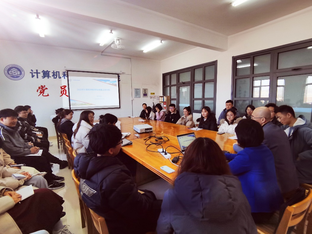 陈国秋对2021年学生党建工作、学生党员学习成绩和工作任职情况进行了梳理回顾,并对新学期的学生党建工作进行了详细部署,重点强调了2022年发展党员工作需要把好“入门关”、“过程关”、“教育关”,要求各支部书记认真严格、保质保量地完成新形势下学生党员发展工作任务,并提出分层分类地办好学院党校;开展“党建新时代,一起向未来”学生党员素质提升训练营活动;通过“三会一课”、“理论书香社”、“一党日一主题”、“一支部一特色”、“党员先锋成长计划”等活动强化学生党员对党的理论知识的学习;开展“春风”党员志愿活动、参观红色教育基地等实践教育活动;开展第七届党员“旗帜工程”,推进党建品牌建设;尊重学生党员主体地位,充分发挥党支部直接教育、管理、监督党员作用;通过理论与实践相结合,发扬建党精神,不断完善党员教育管理工作体系;加强党风廉政建设,营造风清气正的校园氛围。