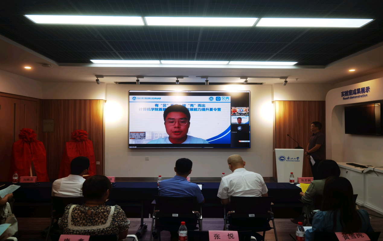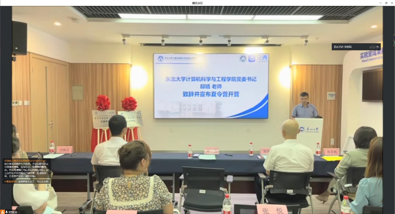 7月27日下午,我院“首届大学生职业发展能力提升夏令营”启动仪式在南湖校区智慧系统国际实验室报告厅以线上、线下相结合的方式举行,教育部供需对接就业育人项目共建单位代表北京思特奇信息技术股份有限公司辽宁分支总经理刘冰、HR张月,凯捷咨询(中国)有限公司东北大区校企合作负责人刘姝岳及部分2019级企业班导师代表,我院党委书记邸馗,党委副书记兼副院长聂国东出席会议,其余供需对接就业育人项目共建单位代表、2019级企业班导师、学院辅导员老师、2019级全体同学以及100名夏令营营员们线上同步参会。会议由我院团委书记李东海主持。