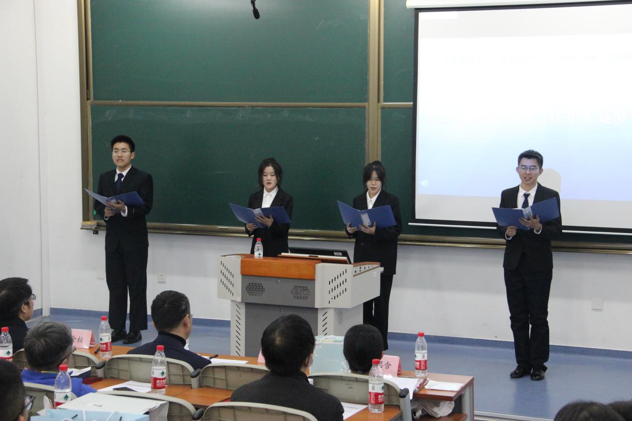 2022级本科学生代表表演了原创诗朗诵《“计”往开来,逐梦“企”航》,激昂的诵读伴随着现场悠扬的笛声,句句饱含着对班导师老师的崇敬和对学校、学院培养的感激。