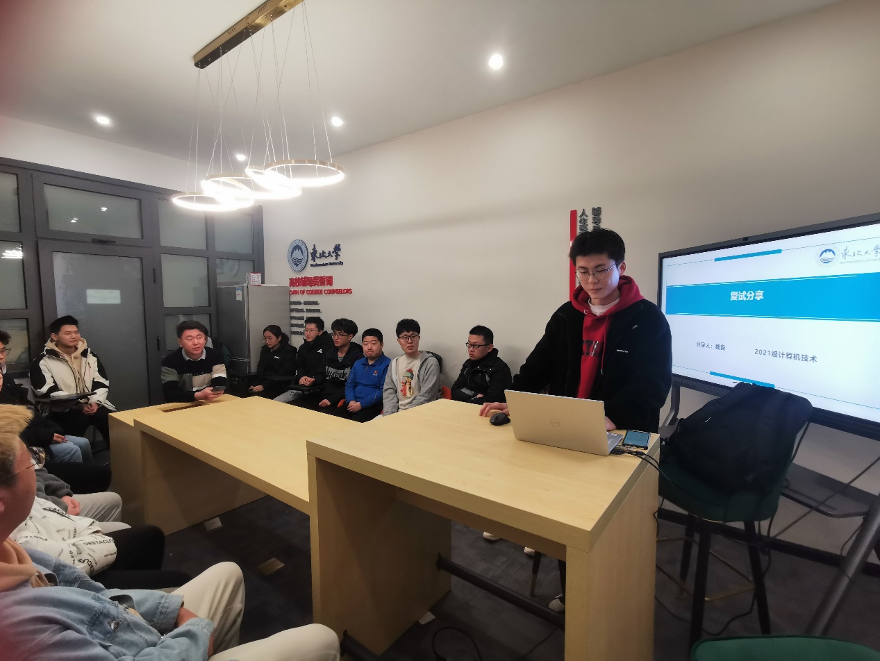3月7日晚七点,我院“研途有你,助力梦想”考研复试经验分享沙龙于浑南校区“一站式”学生社区活动室五舍A104举办,分享会通过腾讯会议线上同步直播,2021、2022届优秀毕业生代表、23届考研同学80余人参加分享会。