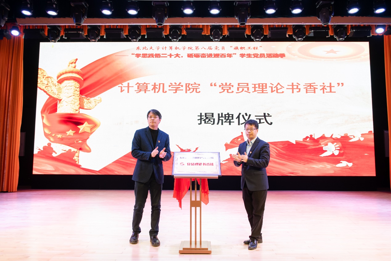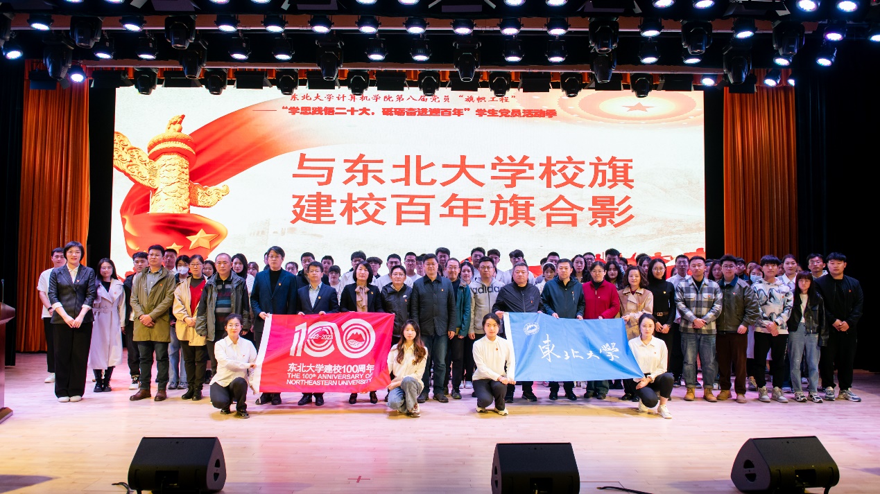 最后,在场的领导老师、学生党员代表与东北大学校旗和东北大学建校百年旗合影,我院第八届党员“旗帜工程”启动仪式在全体师生共同唱响东北大学校歌中落下帷幕。