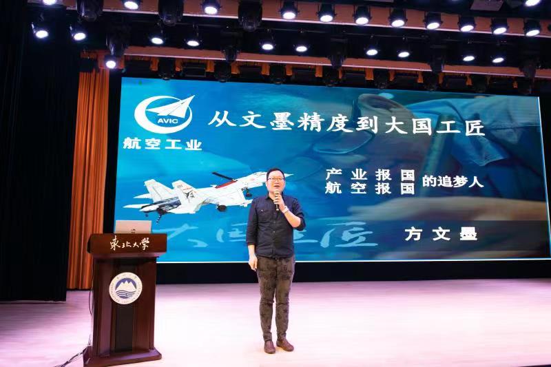 仪式后,进行了本届党员“旗帜工程”首场报告。沈飞航空博览园宣讲团做了主题为《精神之光》的宣讲,她们用动人的语言、生动的事例、丰富的知识讲述了罗阳精神,讲述了一代代沈飞人追求卓越航空报国的家国情怀。随后,沈飞公司航空工业首席技能专家、国家级“方文墨技能大师工作室”领衔人方文墨做了主题为《从文墨精度到大国工匠》的专题报告,方老师以“文墨精度”为标准向大家展现出大国工匠的风采,用亲身经历告诉同学们“工匠精神”最重要的是传承、是勤奋、是专注、是创新!要用精湛的专业技术为强国建设贡献青春力量。报告厅内掌声不断、气氛热烈,学生党员们感触颇深、受益匪浅!同学们纷纷表示要向方文墨老师学习,用自己的智慧去创造生活的精彩!我们要以罗阳为代表的航空人为榜样,发扬罗阳精神,铭记党员身份,为中国式现代化做出自己的贡献。