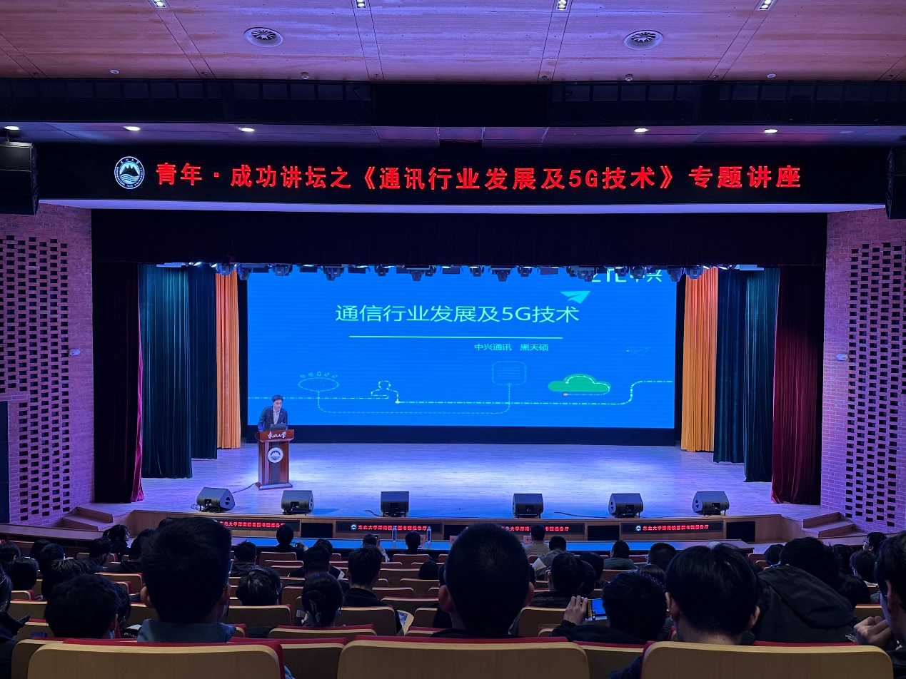 4月12日下午,“青年·成功讲坛”之《通讯行业发展与5G技术》专题讲座于浑南校区图书馆报告厅顺利举办,本次讲座由东北大学学生指导服务中心主办,计算机科学与工程学院承办,中兴通讯股份有限公司辽宁分公司产品经理黑天硕作为主讲人受邀参加,中兴通讯股份有限公司辽宁地区校园招聘人力资源经理吴天龙、学院学生工作办公室主任梁媛、学院2020级本科生辅导员出席本次讲座,200余名学生参加讲座。
