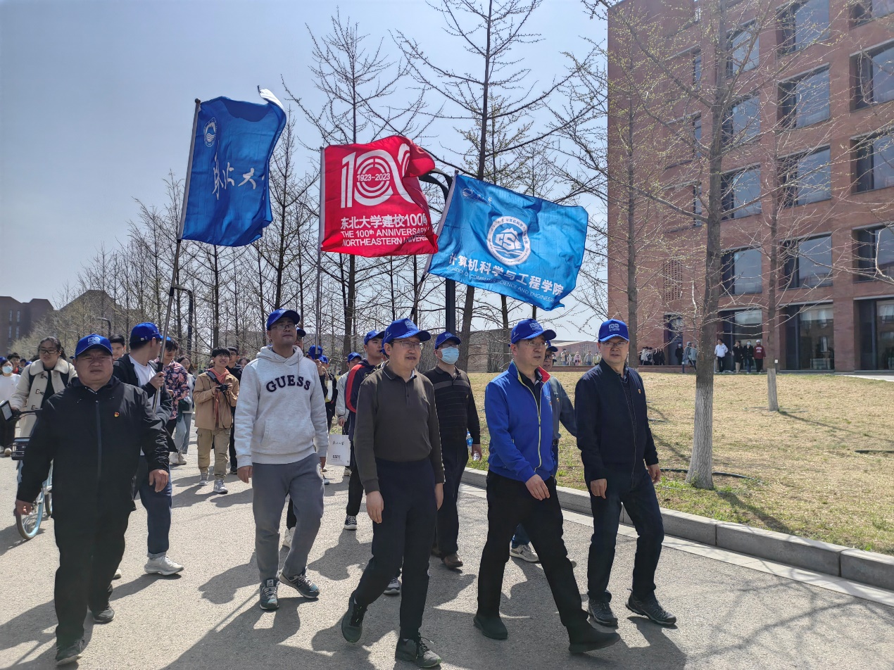 为振奋精神,凝聚力量,丰富师生文化生活,促进师生党员间交流,4月19日,在东大百年华诞即将到来、距东大百年校庆庆典倒计时150天之际,我院师生党员欢聚一起,举行校园徒步大会,共同庆祝东北大学建校百年。学院党委书记邸馗、学院党员志愿者以及师生党员代表共计600多人参与本次活动。活动由党委组织员陈国秋主持。