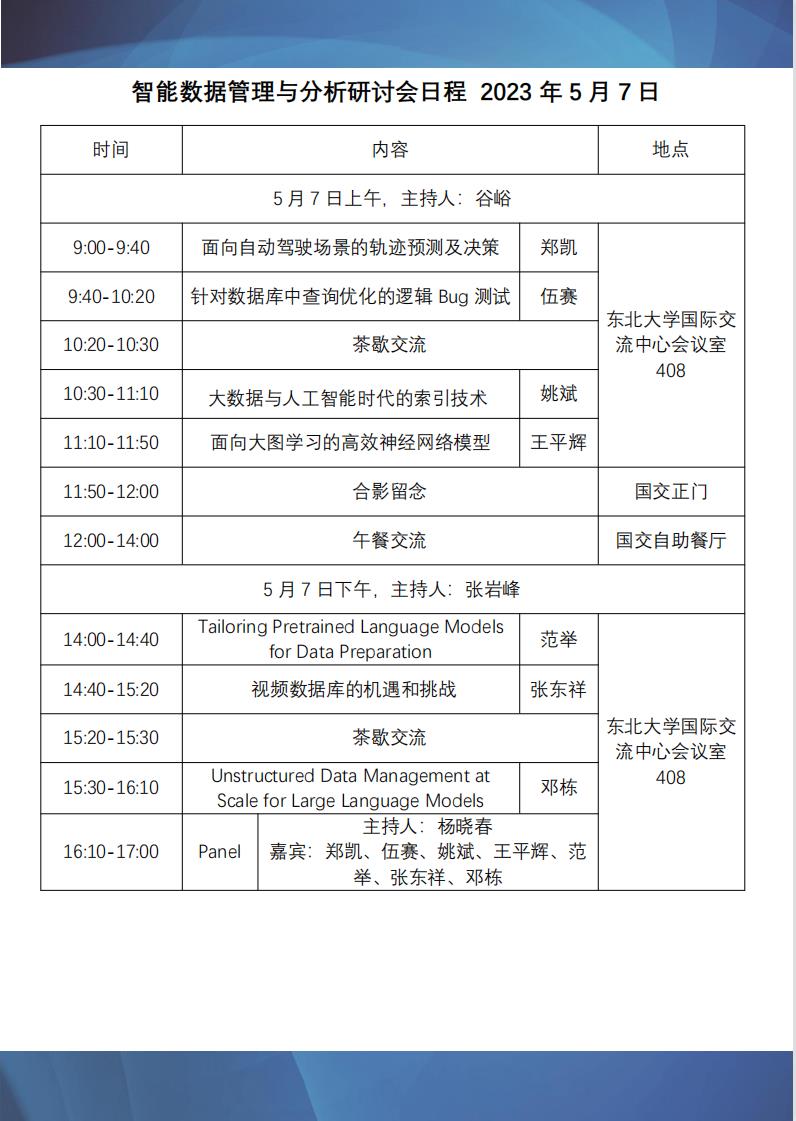 智能数据管理与分析研讨会