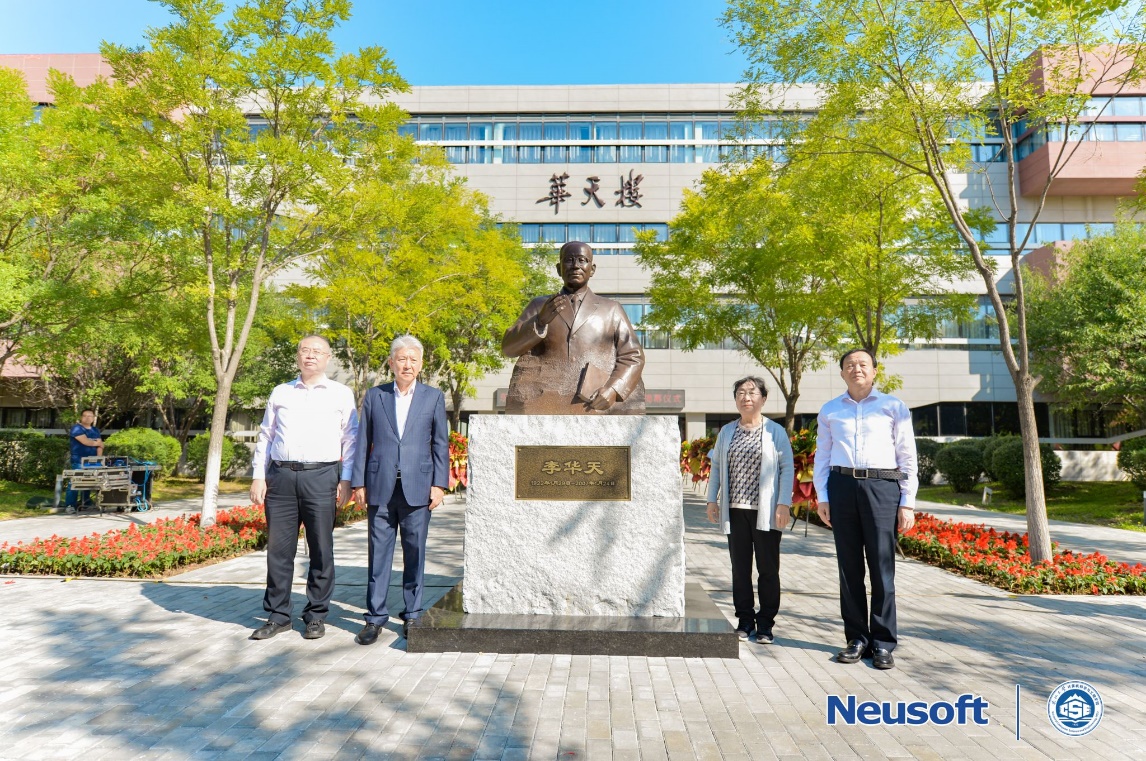 9月15日上午9时,东北大学李华天教授塑像暨华天楼揭幕仪式在浑南校区信息学馆A座广场举行。李华天教授女儿李彤玉女士与郭海、刘积仁、王兴伟共同为李华天老师塑像揭幕。今年,正值东北大学百年校庆,李华天教授诞辰101周年,李华天教授塑像由李华天教授学生——刘积仁创办的东软集团敬捐制作并命名。塑像以李华天教授在东北大学任教期间的工作照为蓝本创作,雕塑总高2.6米,人像高度1.28米,宽93厘米。“华天楼”三个字是由李华天教授学生、东软集团董事长刘积仁教授亲自手书,并由东软集团捐资成立的华天基金命名镌刻。