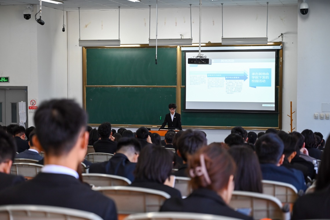 六位团学组织负责人分别介绍了各分管工作的学期工作计划,大家用思维导图、时间轴等形式,全面系统、清晰条理地对学期工作目标和计划进行了阐述,全体与会同学认真聆听。