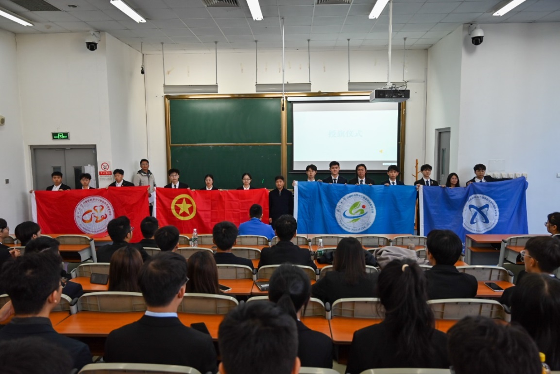 会议在庄严的国歌声中拉开序幕。会上,李东海介绍了第九届团学组织全体学生负责人,石昌远向四大团学组织学生负责人集体授旗。