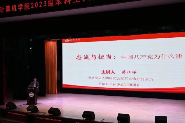 9月27日,学院2023级本科生入党“启航计划”第三场专题报告于图书馆学术报告厅举行。学院学生党总支特邀原沈阳军区某部政治部主任葛江洋大校作题为“‘忠诚与担当’中国共产党为什么能”为主题的专题报告会。葛大校以父亲葛接调参加过二万五千里长征的老红军,坚韧不屈地经历了艰苦长征并守护着一台宝贵的缝纫机,讲述了在长征途中为战士们制作棉衣等很多鲜为人知的故事,深入浅出的解读了长征精神的意义和价值。向同学们生动地诠释了一位共产党人的坚定信念——向往理想目标并愿意为之奋斗、献身的不懈追求。大家在听完葛大校讲述的长征故事后,纷纷表示:“这是一次深刻的理想信念教育,也是一次生动的长征精神教育。我们一定要在日常学习中践行长征精神,积极加入中国共产党成就人生理想,长征精神必将薪火相传。”