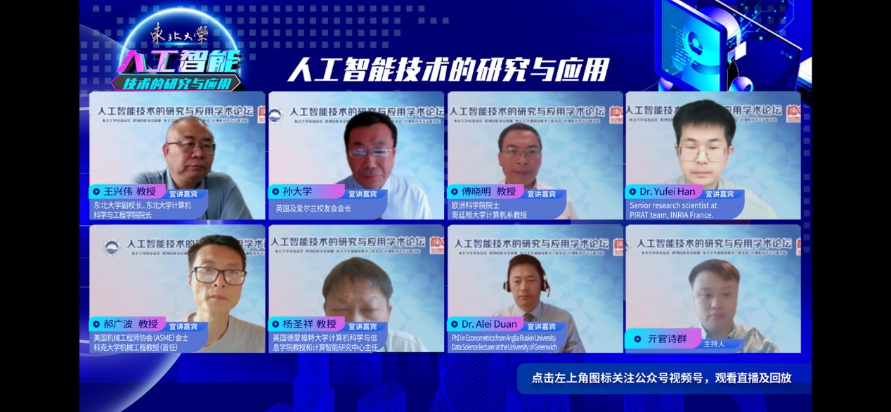 2024年6月30日,由东北大学校友总会、欧洲区校友会联盟、东北大学英国及爱尔兰校友会、计算机科学与工程学院联合举办的“人工智能技术的研究与应用”学术论坛(线上直播)顺利举行。论坛邀请东北大学副校长、计算机科学与工程学院院长王兴伟教授、欧洲科学院院士傅晓明教授以及其他活跃在欧洲各领域的优秀校友做学术报告。
