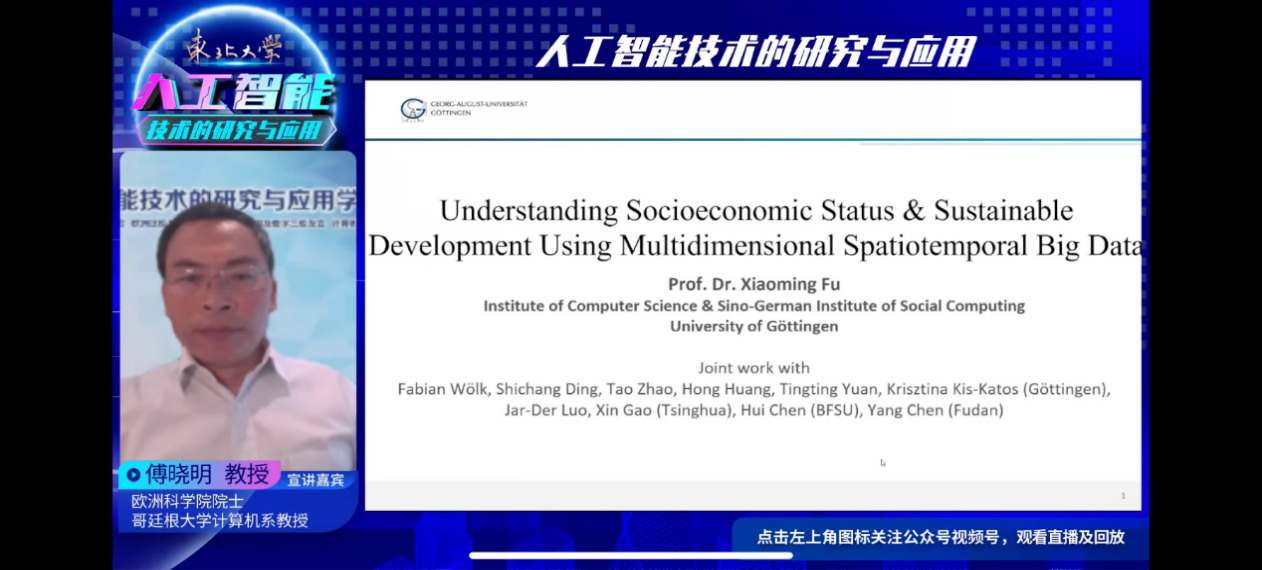 欧洲科学院院士傅晓明教授作题为“基于多维时空大数据的社会经济地位与可持续性”的主题报告,介绍大数据、人工智能技术在德国高校的学术研究方面,特别是社会经济学方面的研究。