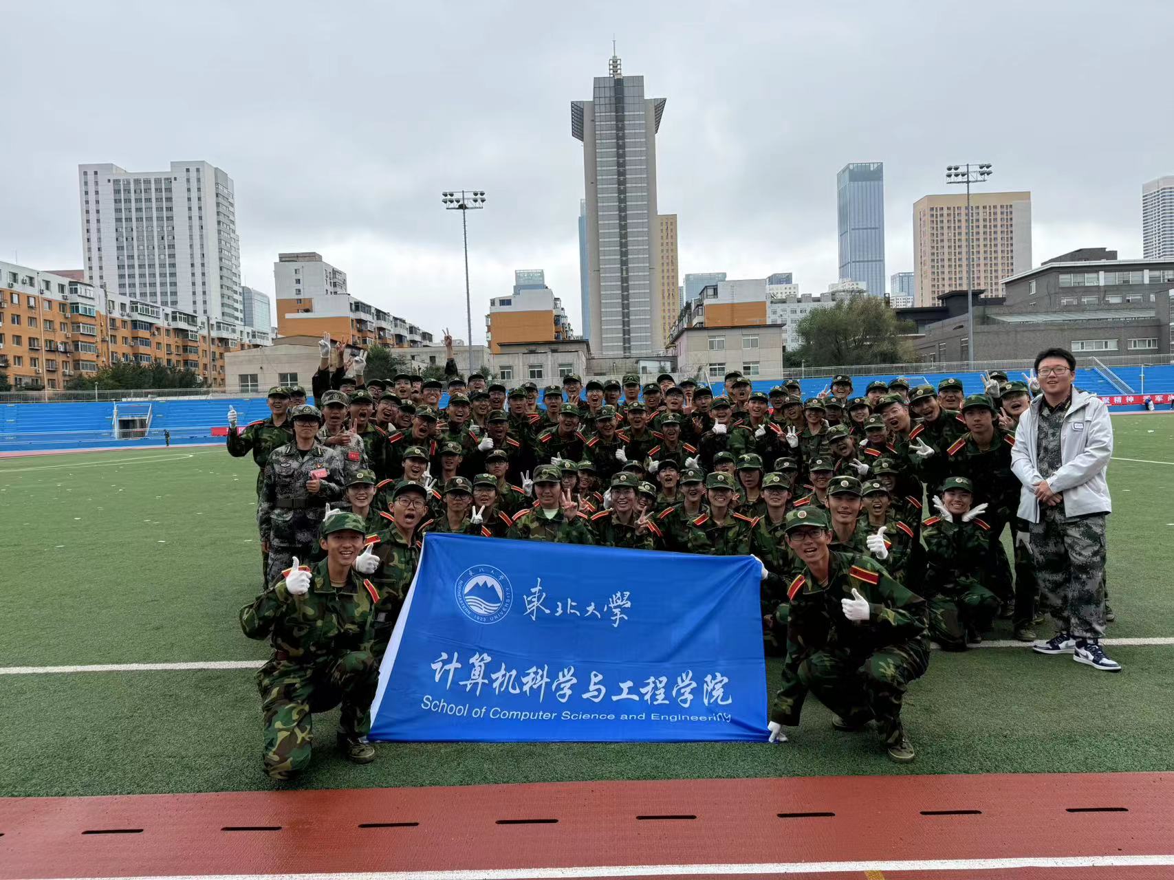 2024年9月14日,在东北大学南湖校区五四体育场,2024级计算机科学与工程学院的新生结束了为期14天的军训生活。严格的军训,使学生养成了良好作风,学会了严格要求自己,还帮助他们快速融入大学生活,为未来的学习和生活打下了坚实的基础。