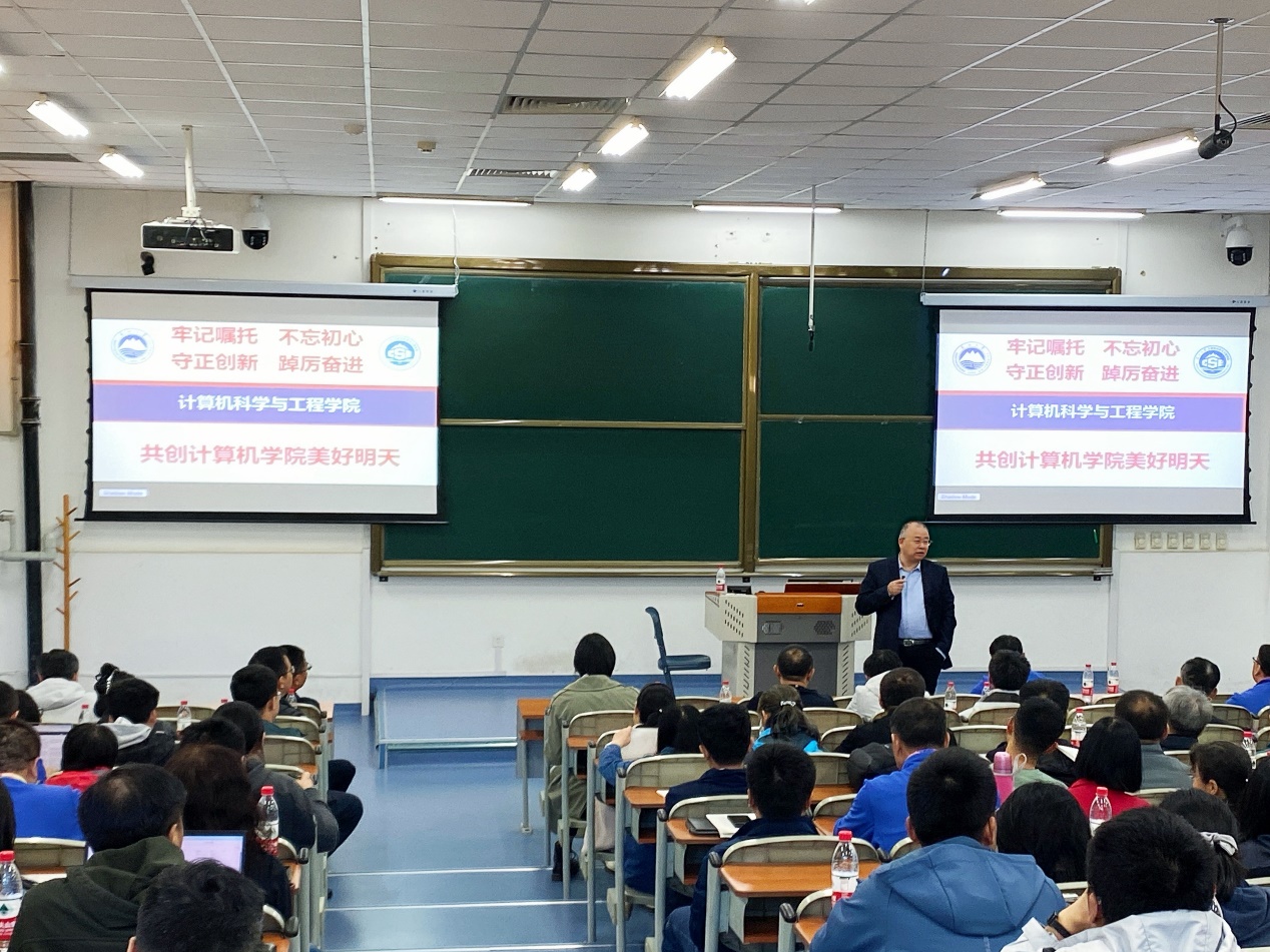 王兴伟首先围绕学院发展现状、“十四五”目标完成情况、建设思路与举措三个方面进行介绍,鼓励广大教职工要牢记嘱托、不忘初心、守正创新、踔厉奋进。王兴伟强调,本次教育思想大讨论是学院做好教育教学改革工作的重要依托,要以习近平总书记重要回信精神为根本遵循,贯彻落实学校第十五次党代会精神和学校战略部署,紧紧围绕人才培养中心任务和终极使命,面向新质新域生产力发展机遇,迎接AI驱动数智化教育革命挑战,集聚新动能,决战新赛道,全力打造教科产融合、学政产融汇、海内外汇聚的鲜明特色,加快建设世界知名、国内一流计算机学院,为东北全面振兴、中国新型工业化、中国式现代化贡献东大计算机人更大的担当与作为。同时,要紧紧围绕审核评估工作,系统梳理教学过程,真正做到“以评促建、以评促改、评建结合”,全面提升学院办学水平和人才培养质量。