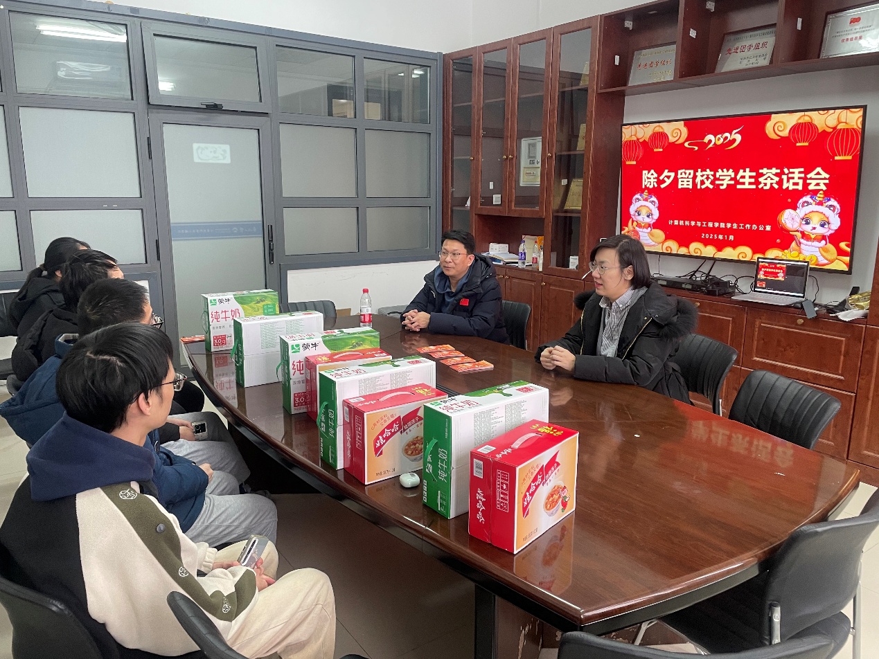 2025年春节前夕,我院党委书记邸馗、副院长高鑫、党委副书记、副院长(兼)梁媛、党委副书记、纪委书记(兼)李传文及学院学生工作相关负责同志,通过深入学生寝室、召开座谈会等形式慰问春节留校学生,向学生们致以新春问候和节日祝福。