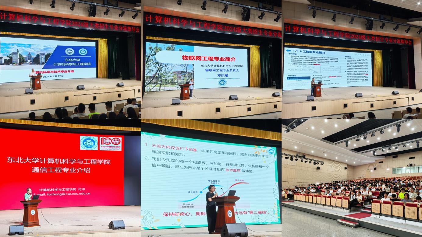 6月17日下午,计算机学院于浑南校区学生活动中心二楼多功能厅举办了2024级本科生大类招生专业分流指导会。计算机科学与技术专业吴刚、物联网工程专业邓庆绪、通信工程专业付冲、电子信息工程专业魏阳杰、人工智能专业高岩以及2024级全体学生参加会议,会议由2024级本科教学秘书张怀文主持。