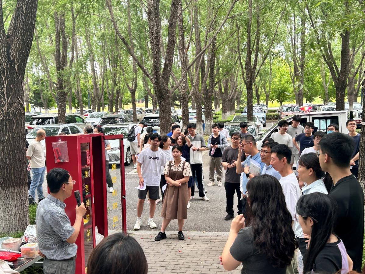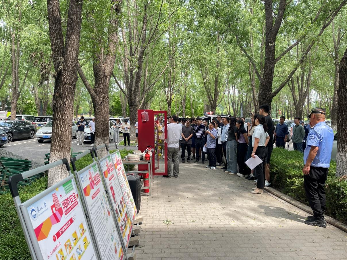 消防实际操作演练包含逃生演练和消防器材的实际操作演练两部分。逃生演练环节,警报拉响后,师生们迅速捂住口鼻,按照预定路线,从信息学馆B三楼安全出口快速、有序撤离。在消防器材实操环节,公安处老师进行专业讲解与现场指导,师生们系统学习了消火栓、灭火器及微型消防站内逃生器材的使用方法,并轮流进行操作演练,在实践中掌握技能。