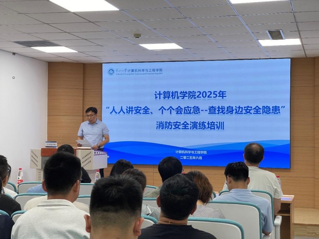6月18日,计算机学院于浑南校区信息学馆B328报告厅组织开展2025年“人人讲安全、个个会应急--查找身边安全隐患”消防安全演练培训,此次培训特别邀请消防专家李伟担任主讲,学院领导班子成员、学院安全员和师生代表共80余人参加。演练培训由副院长高鑫主持。