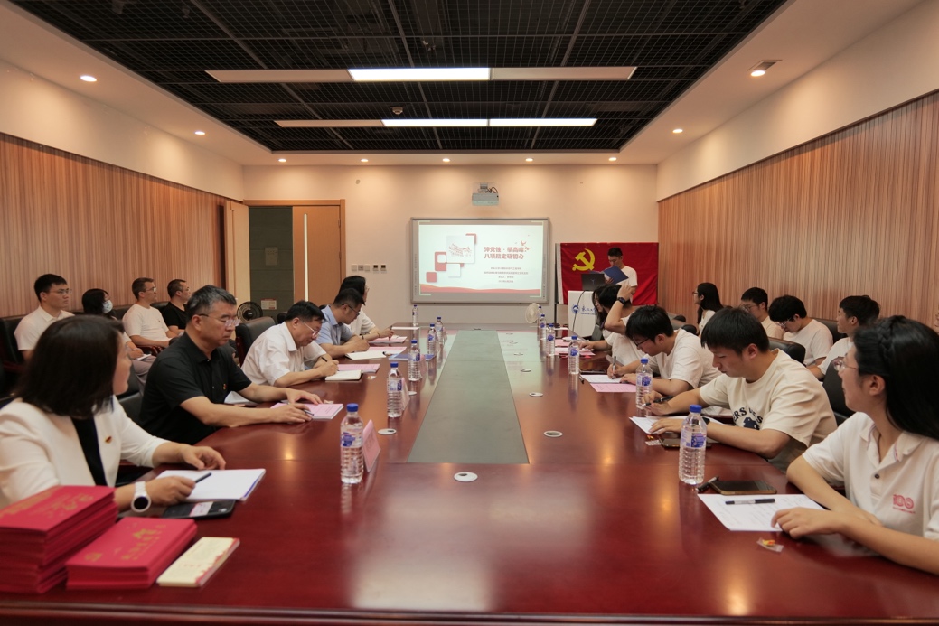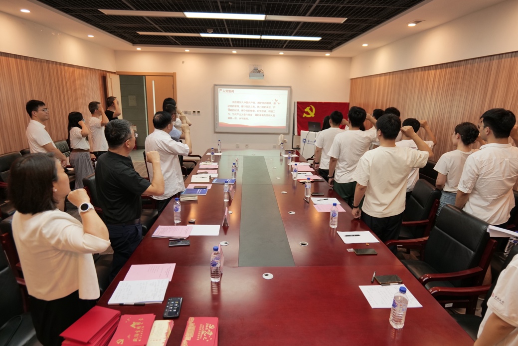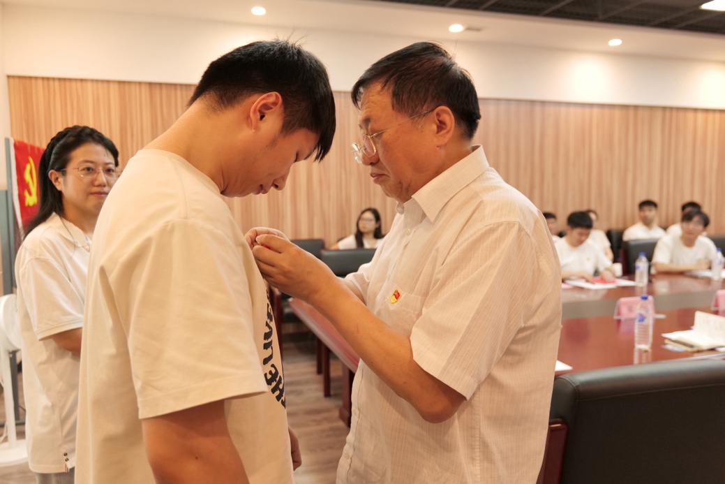 在初心传承仪式上,邴正为两名支部新发展党员佩戴党员徽章,全体党员面向党旗重温入党誓词。现场党员通过政治生日贺卡书写与分享,向中国共产党104岁生日致以美好祝福。在场党员开展“科研初心双承诺”,强化党员使命担当。