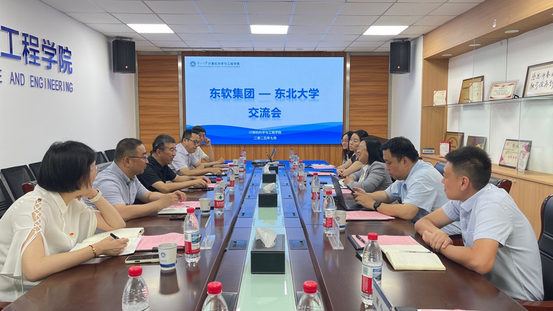 邸馗对牟春芽一行的到访表示热烈欢迎,并介绍了学院在科研与人才培养方面取得的成果。郑萌、梁媛、李传文分别介绍了学院在科研、就业、对外合作等方面的现状与成效,均表示学院各部位将进一步整合师资力量、科研平台与合作资源,与东软集团深入对接,共同打造高水平产学研协同创新平台。牟春芽一行还参观了华天馆,并与学院相关教师进行了深入交流。