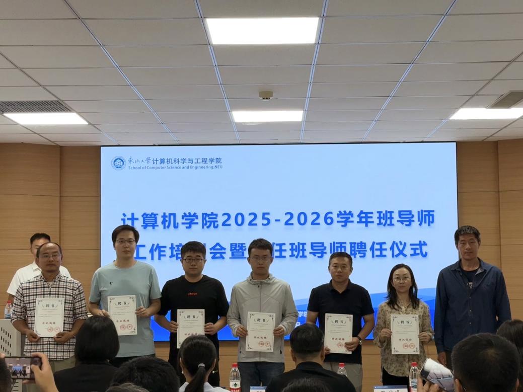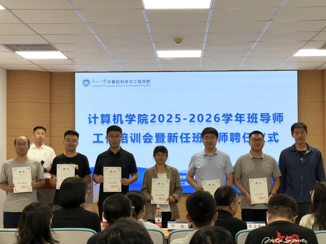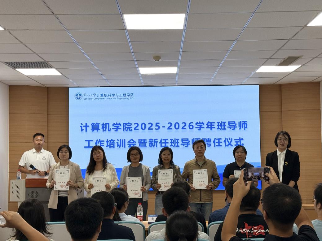 9月17日14:30,计算机学院2025-2026年度班导师工作培训会暨新任班导师聘任仪式在浑南校区信息学馆B328举行。学院党委书记邸馗、副院长张岩峰、党委副书记、副院长(兼)梁媛、学生指导服务中心心理健康教育中心副主任方婧譞,以及学院教工党支部书记、全体在任班导师、本科生辅导员参加仪式,仪式由学院学生工作办公室副主任张棹然主持。