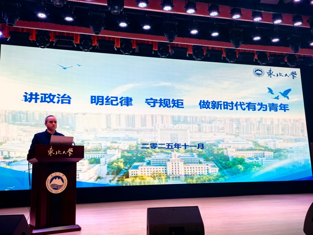 为深入学习贯彻落实党的二十大精神和中央八项规定精神,扎实推进青年学生廉政教育,引导新时代青年筑牢思想根基、强化纪律意识,11月27日,计算机学院学生党总支在东北大学浑南校区图书馆泰山学术报告厅,组织全体学生党员同上一堂“讲政治 明纪律 守规矩 做新时代有为青年”廉政教育主题党课。本次党课由学校纪委办副主任夏风云主讲,学院全体学生党员、发展对象以及各班级班长团支书共同参与学习。