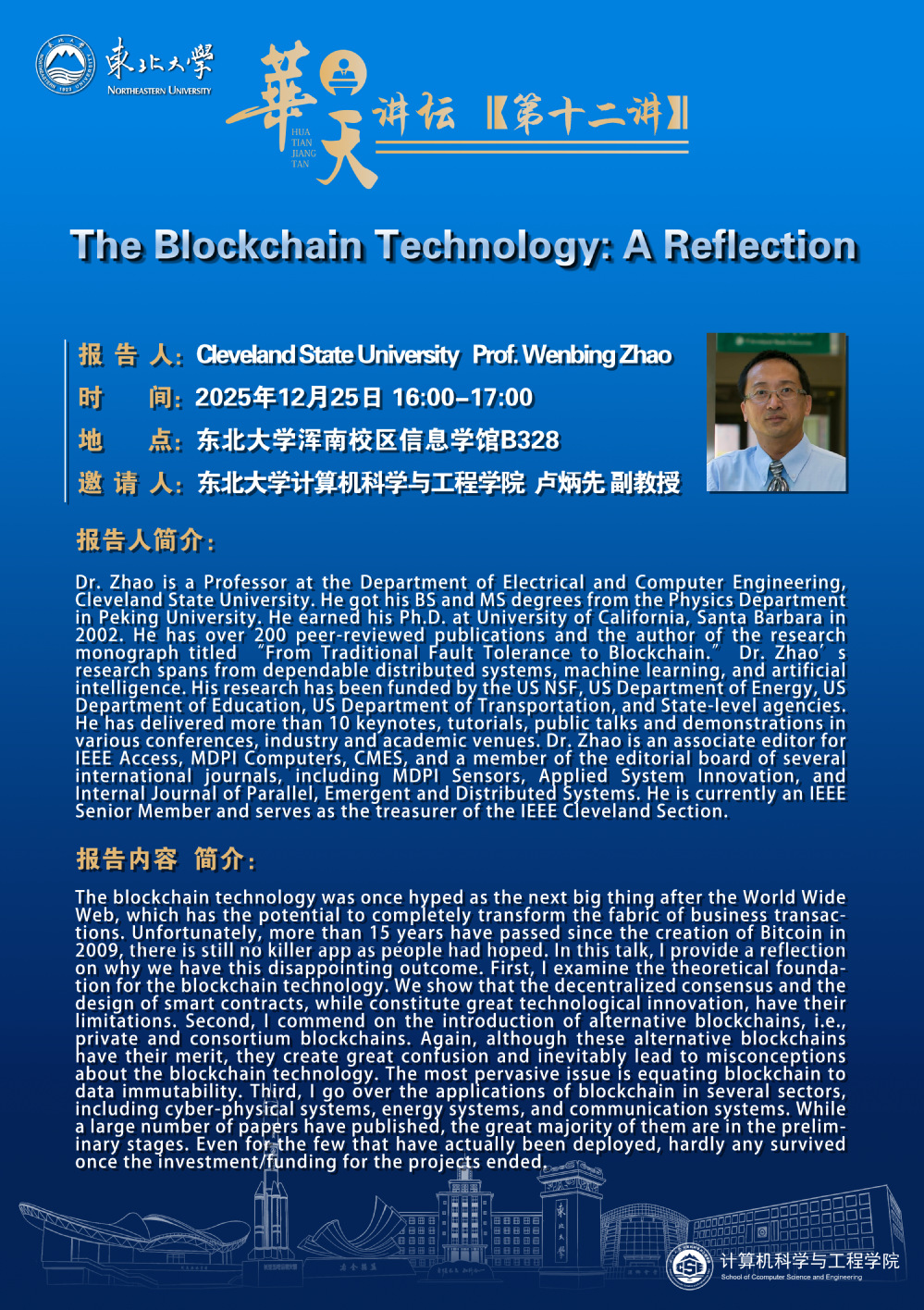 “华天讲坛”第十二讲-Prof. Wenbing Zhao学术报告