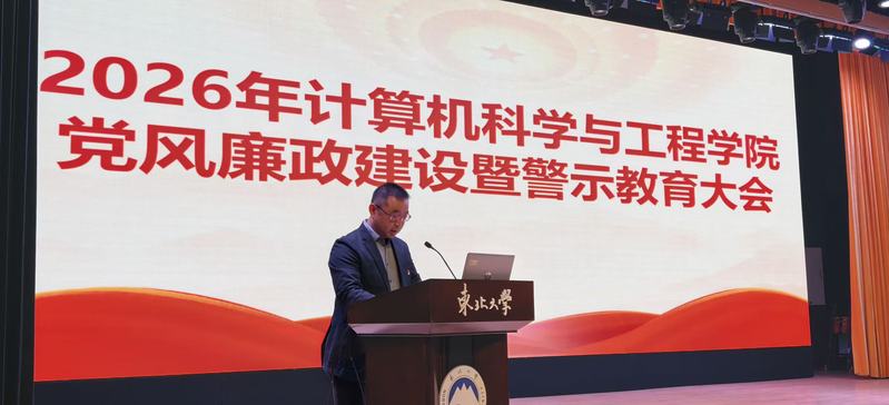 3月13日,东北大学计算机学院召开2026年党风廉政建设暨警示教育大会,学院全体教职工参会,会议由学院党委副书记、纪委书记李传文主持。